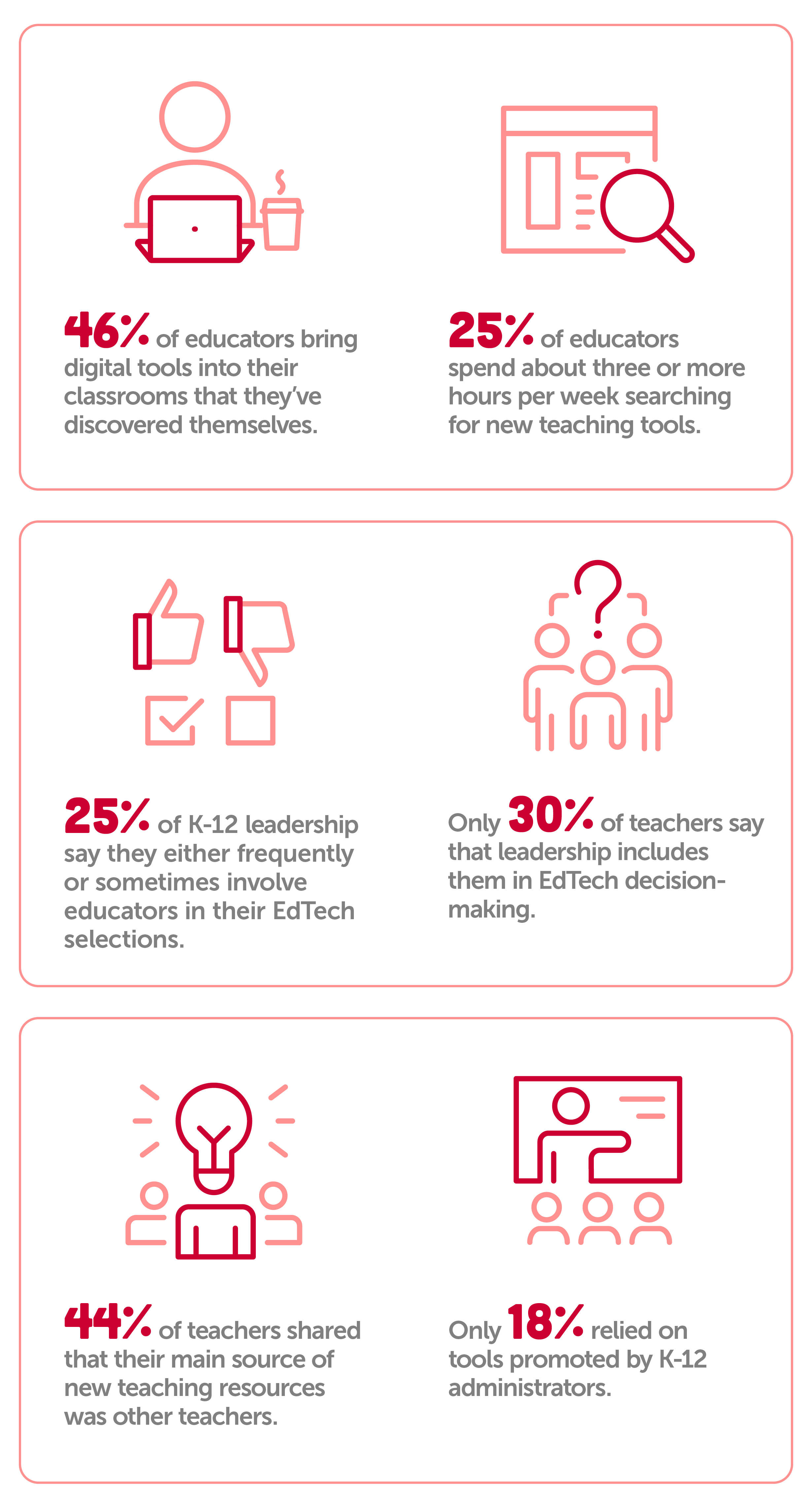 - 46% of educators bring digital tools into their classrooms that they’ve discovered themselves.